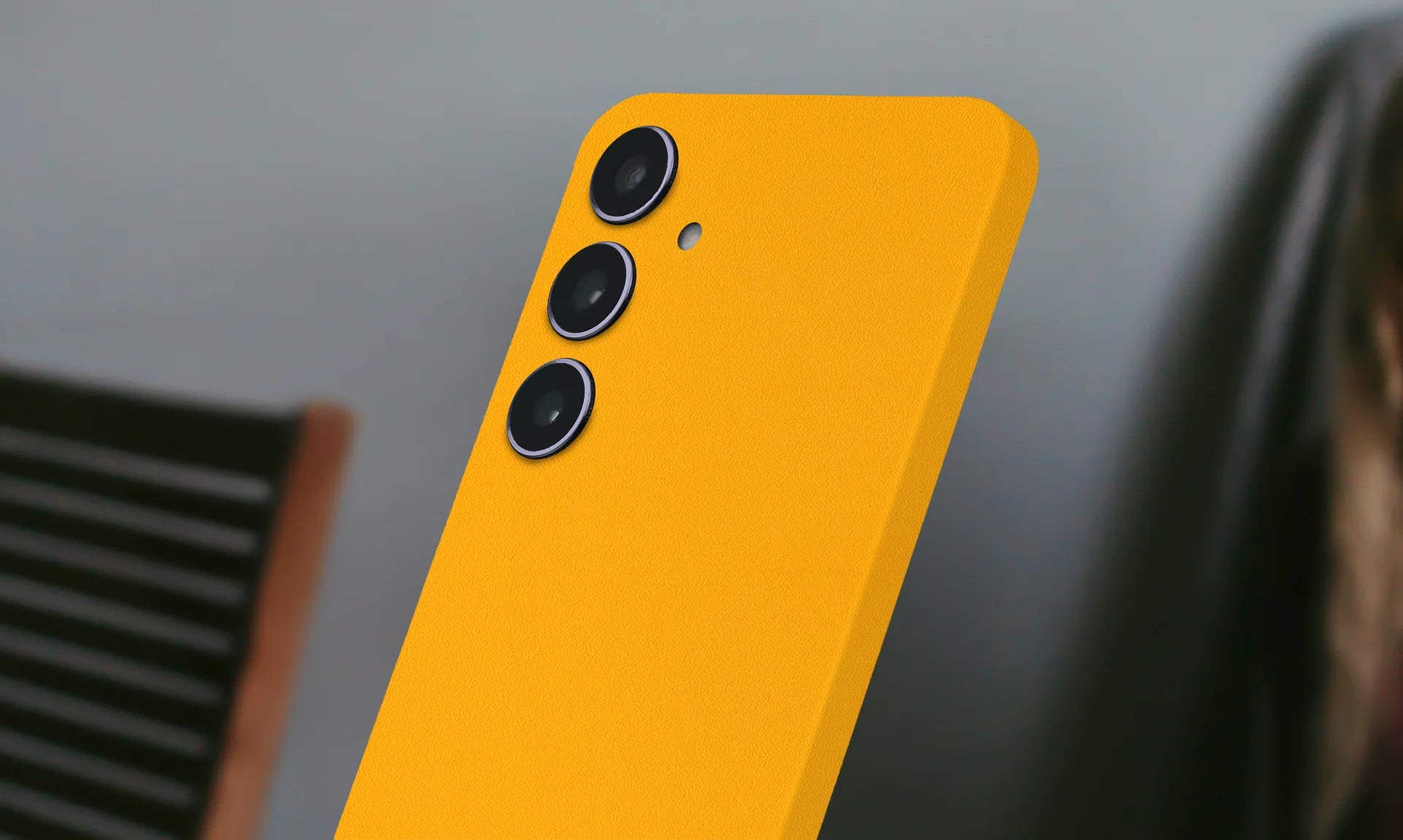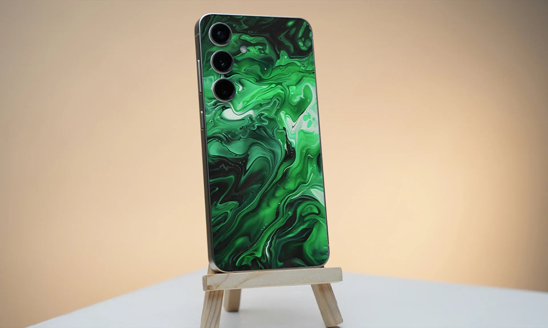 You can clean your skin-covered Galaxy S24 Plus with a damp cloth. Avoid using harsh chemicals or abrasive materials.